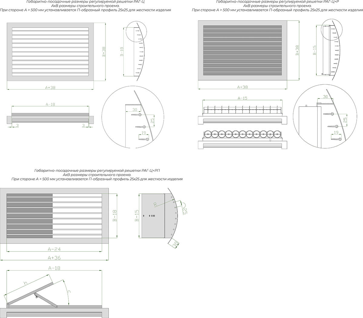 Способы установки однорядных и двухрядных вентиляционных решеток РАГ, РАГ-М, РАД, РАГ-В